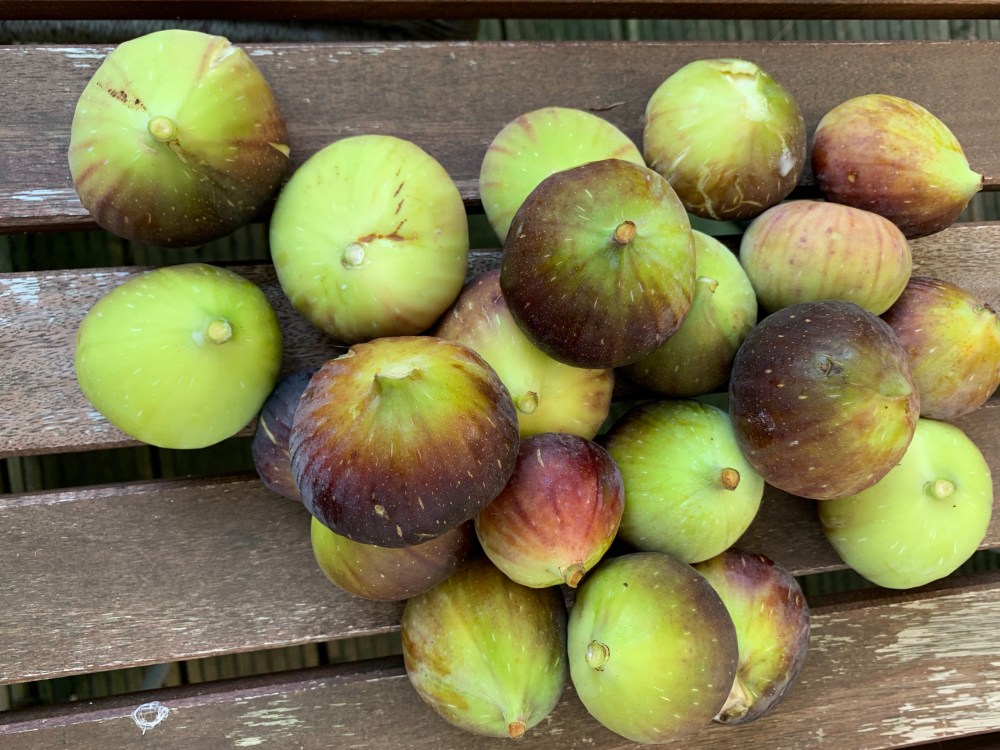 Je n’ai jamais eu autant de figues que cette année: deux fois 1,5kg de fruits, que j’ai cueillis avant le retour du froid. Certaines étaient encore un peu vertes, même si elles se détachaient facilement. J’ai décidé d’en faire une confiture. Je les ai laissées un peu mûrir 2 jours. Puis je m’y suis attaquée!