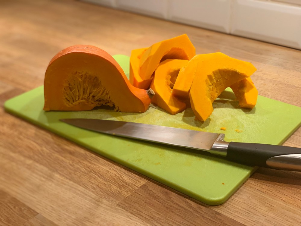Une nouvelle recette au potiron que j’ai décidé de faire… avec du potimarron ! J’ai l’impression qu’on en trouve plus facilement… Puis il est mignon, non?