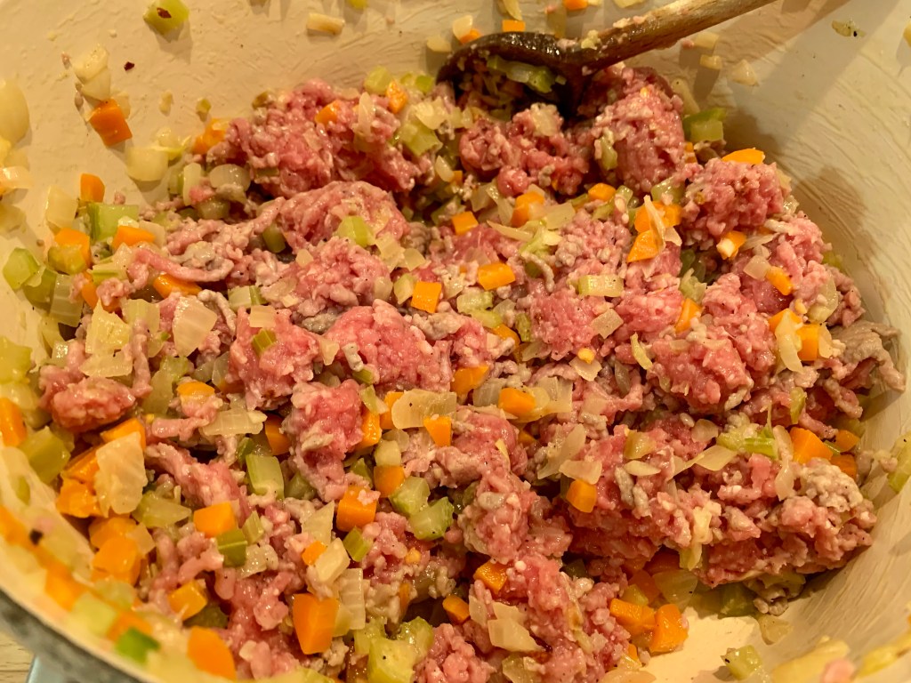 Recette faite, refaite, des dizaines de fois: la sauce bolognaise, Ragù alla bolognese, p. 61 de la Cuillère d’argent. Le classique, quoi.