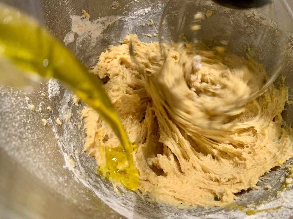 Tout en continuant de mélanger, ajouter l’huile.