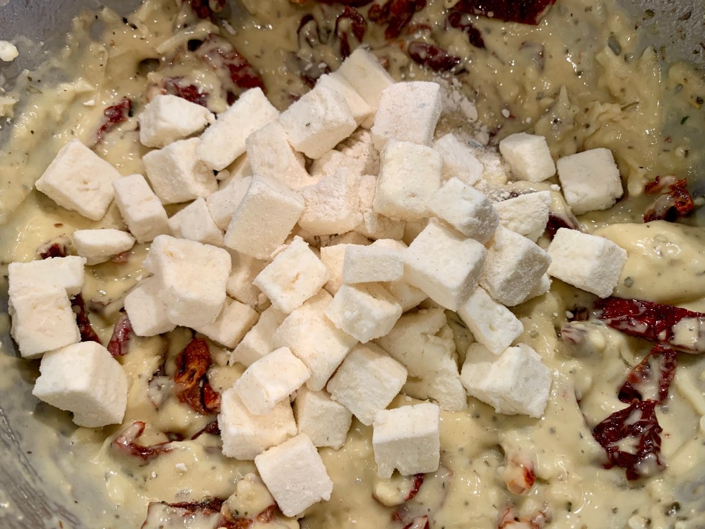 Ajouter les tomates séchées et la feta à la pâte et mélanger délicatement, avec une spatule.