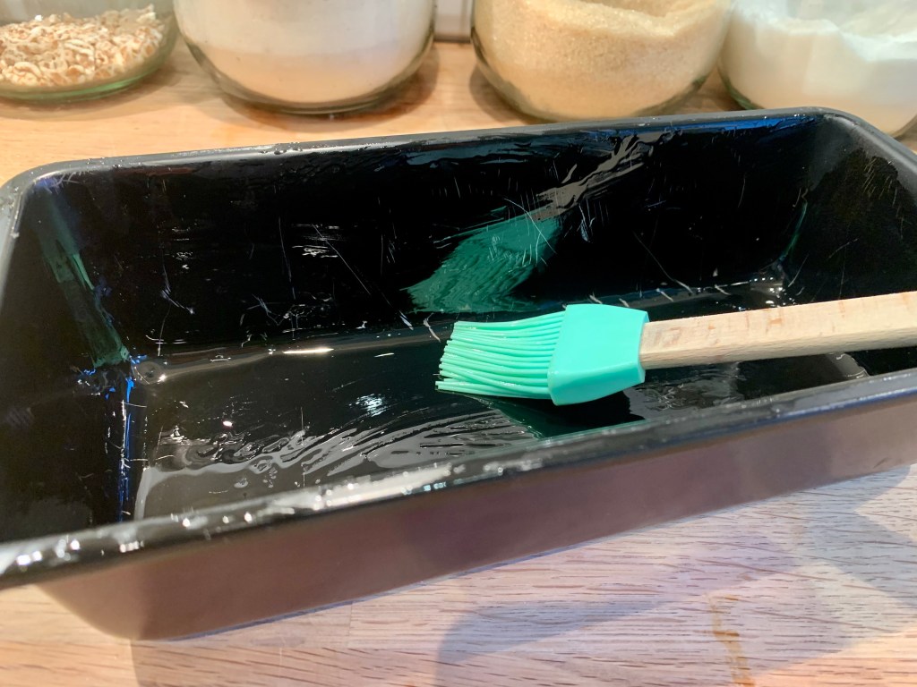Beurrer ou huiler un moule à cake (oui, il est bien cabossé le mien😅). Vous pouvez aussi placer une feuille de papier sulfurisé à la place.