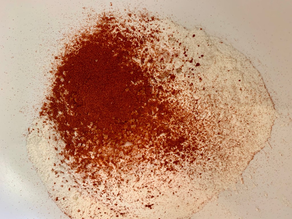 Dans un bol ou un saladier (pas le bol du robot, un autre), mélanger la farine, la levure chimique, le bicarbonate de soude, la fleur de sel et 2g de paprika fumé.