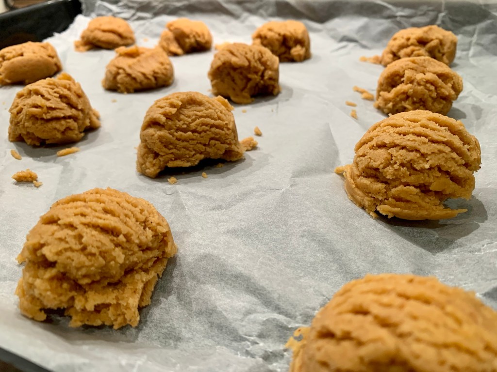 Disposer une feuille de papier sulfurisĂ© sur la plaque. A l’aide d’une cuillĂšre Ă glace, disposer de petites boules espacĂ©es de minimum 5 cm.