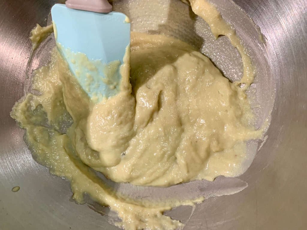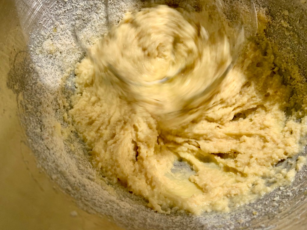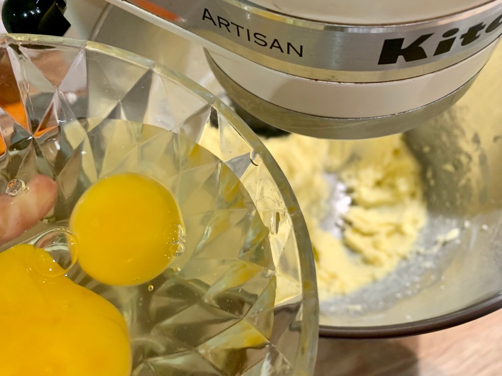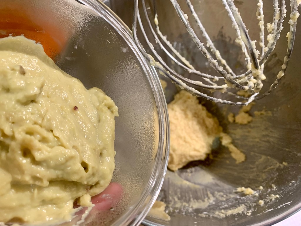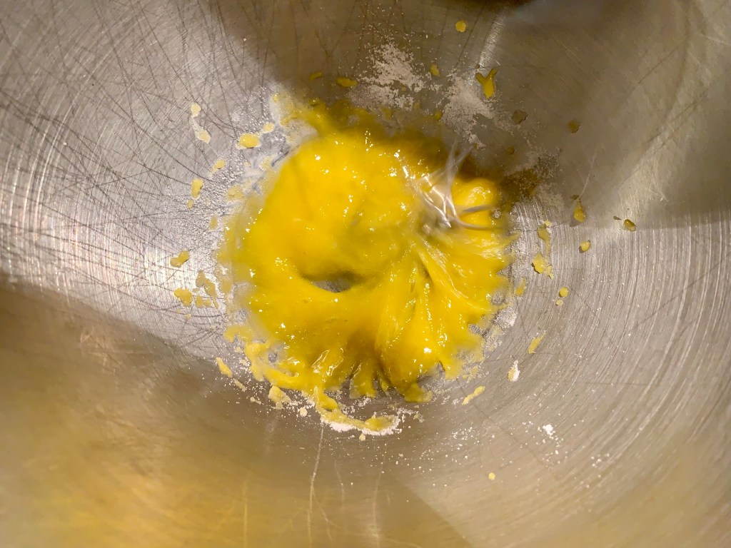 Ajouter la poudre d’amande, toujours en fouettant, ainsi que 2-3 gouttes d’extrait d’amande.