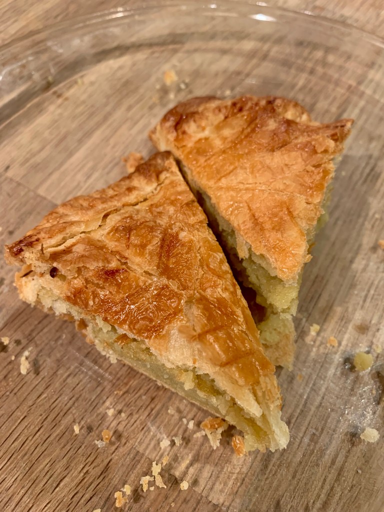 J’avais aussi utilisĂ© des pĂątes feuilletĂ©es toutes faites. C’Ă©tait facile et efficace – cette version a mĂȘme gagnĂ© un concours de galette au boulot, mais je vais pas la ramenerđ.